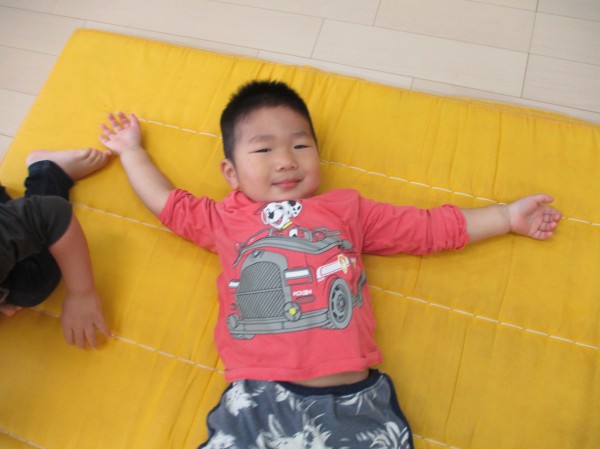 お次はマットでお芋に変身!ゴロゴロ…と上手に転がります☆