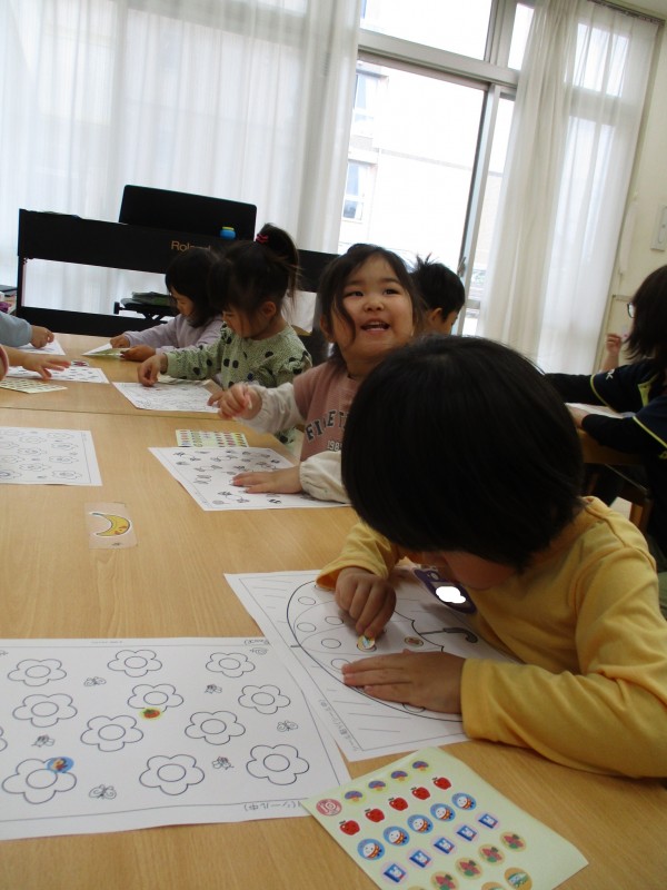 毎日シール帳で貼っている子どもたちですが、好きなだけたくさん貼れるのは嬉しいようです。とても楽しんでいました。