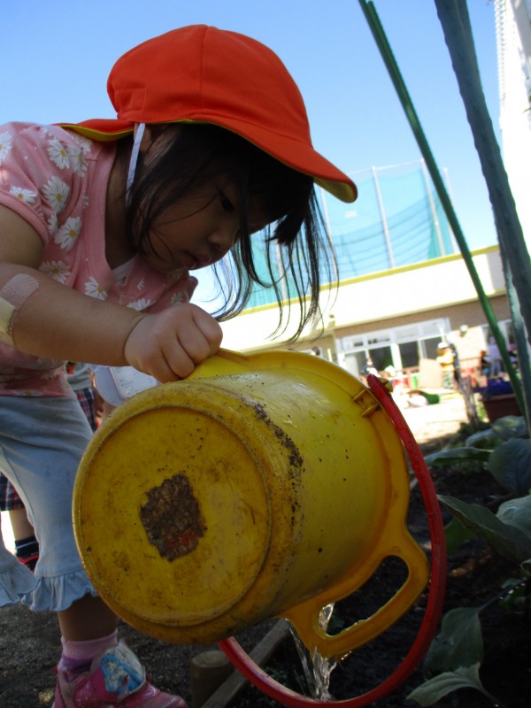 重い水が入ったじょうろやバケツを運ぶ姿はたくましく見えました。