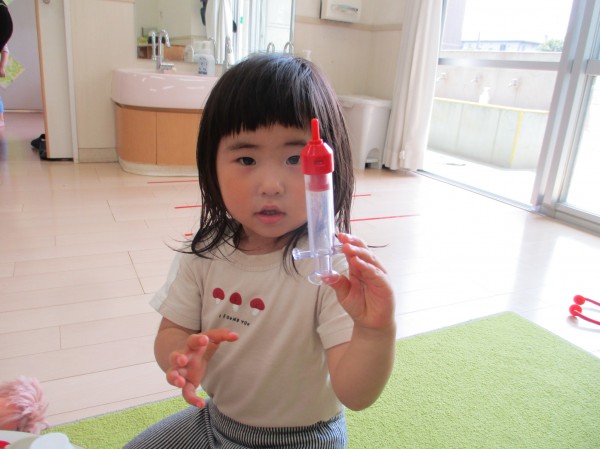 そこからお医者さんごっこへと繋がり、お友だちや赤ちゃんのお人形相手にみんなお医者さんになりきって遊びました☆