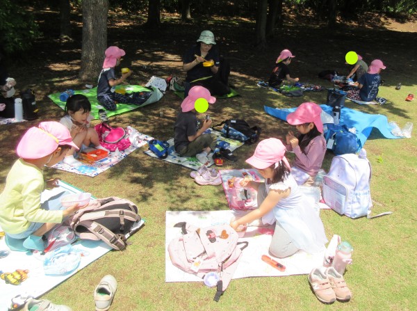 待ちに待ったお弁当の時間‼保育者の掛け声も手伝いも必要なかったようで、自分でシートを広げ、お弁当を出して、それぞれに「いただきます」をして食べ始めていました‼何よりの楽しみだったようです‼