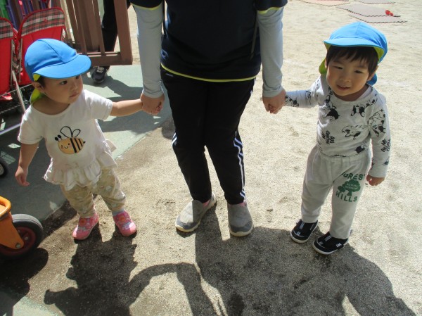 あひる組は初めて近くの公園までお散歩に行きました。