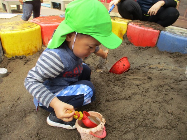 そんな中、今日は砂場で泥んこ遊びをしました♪