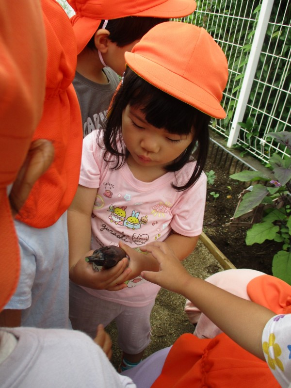 こどもの家・志木中宗岡 ぺんぎん組(3歳児クラス) なすが収穫できたよ♪