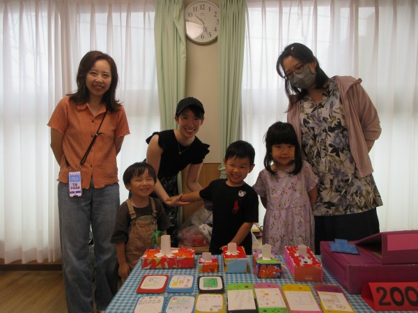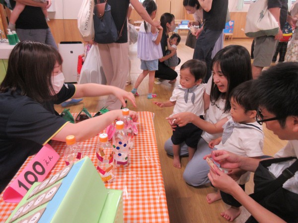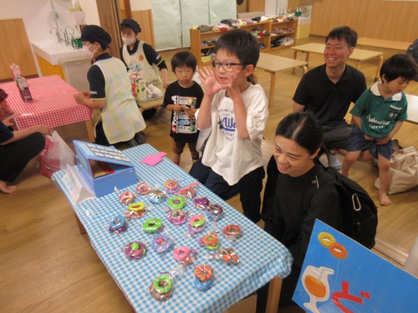 幼児クラスの子ども達は、保護者の方と一緒にお店屋さん・お客さんに前半と後半で分かれて楽しみました。