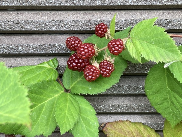保育園の門扉の横には、延べ20mになるラズベリーが塀をつたっています。ラズベリーはバラ科キイチゴ属の1種です。果実はケーキの彩りにもよく使われています。花が咲く季節は4月~5月、実が熟す季節は6月~7月です。