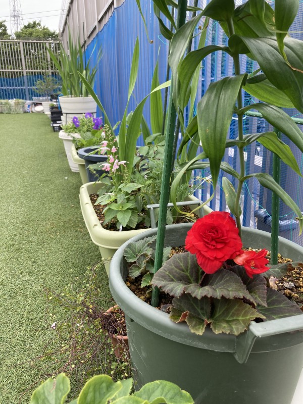 たんぽぽ海神町南保育園では、園の周囲や屋上庭園でたくさんの花を育てています。