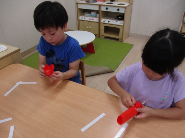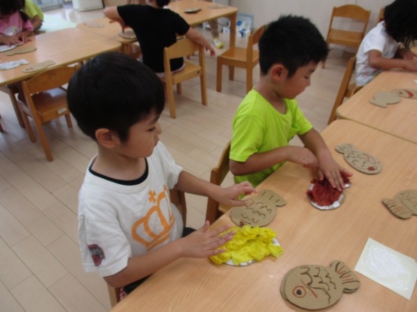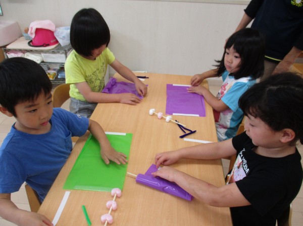こどもの家・志木中宗岡 夏祭りの準備中♪ くじら組(5歳児クラス)