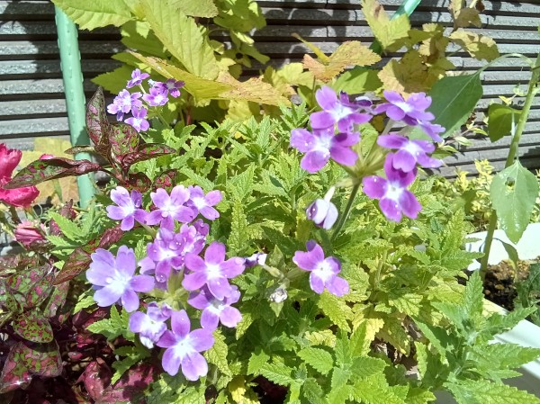保育園の周囲では、バーベナが可憐な花を咲かせています。