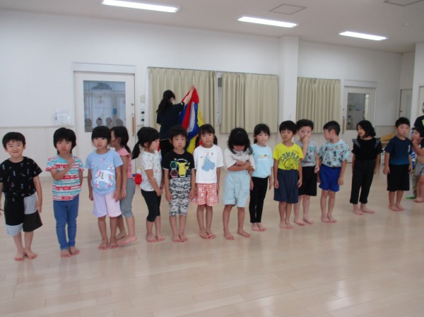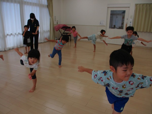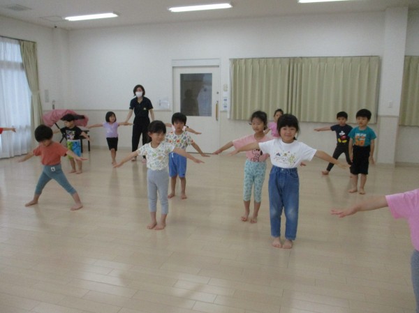 クラスごとに時間を設け、体操やストレッチ、簡単な集団遊びやリレー、かけっこ等を通してみんなで身体を動かして遊んでいます(^^♪