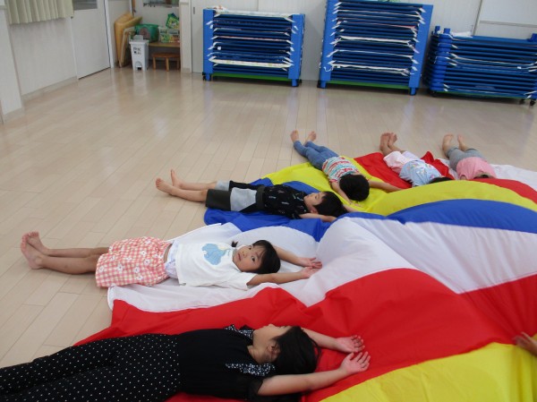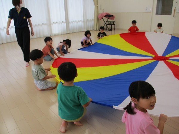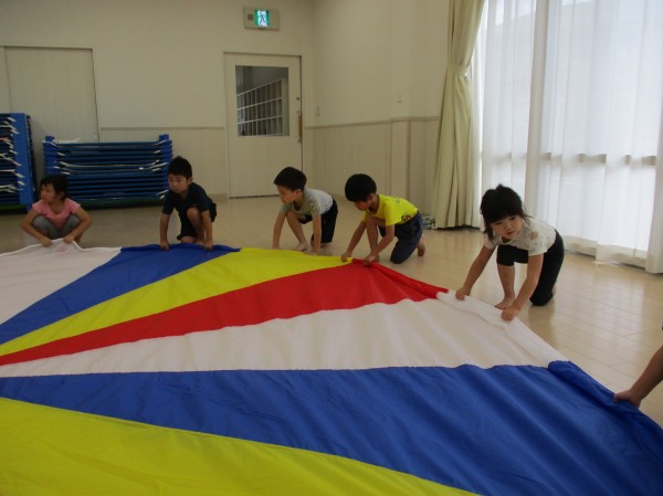パラバルーン表現は、秋に行われる運動会でお家の方や他のクラスのお友だちにも見て頂けたらと思っています!(^^)!