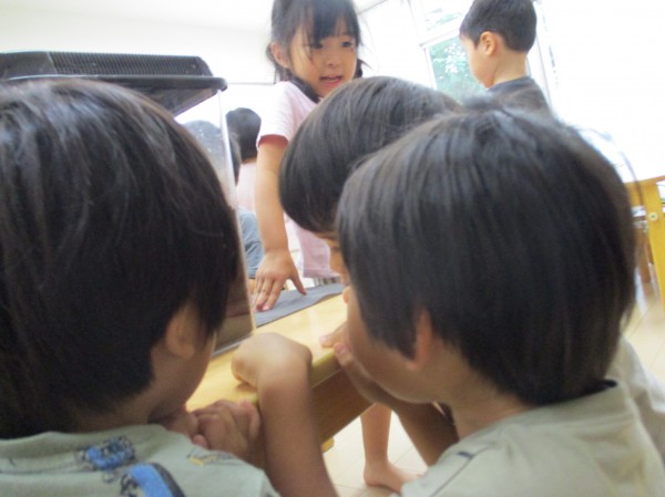 みんなでエサのゼリーをあげたり、背中をつんつんっと触ってみたりとお世話を楽しんでいます(*^^*)