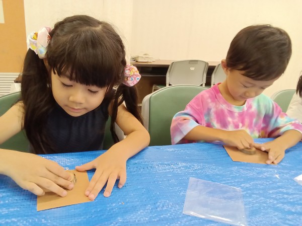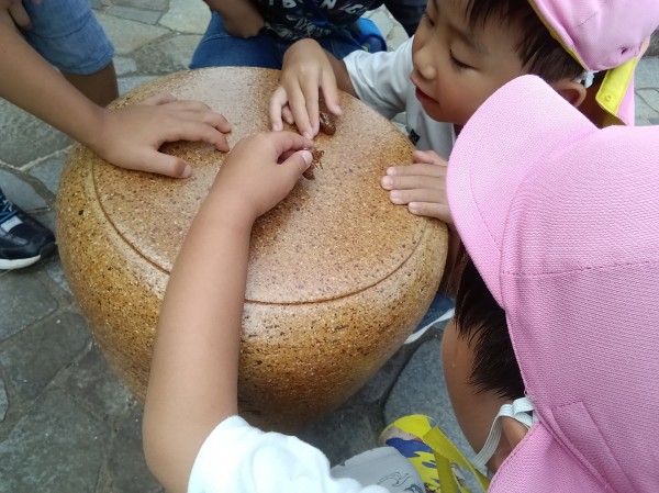 セミの抜け殻を見つけると、大きさを比べ合ったり「生きてるのかな?」「しんでるんじゃない」と話し合ったりしているのでした。