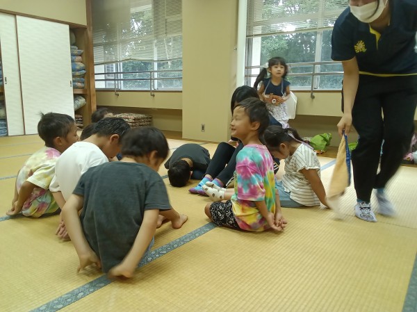 お部屋に戻り束の間の休憩では、ハンカチ落としに大はしゃぎ‼