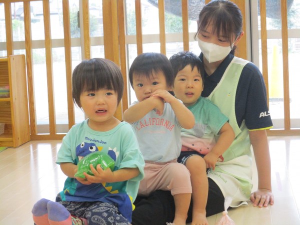 今日はお部屋でのあひる組の遊びをお見せしたいと思います。