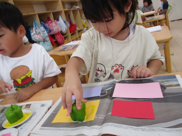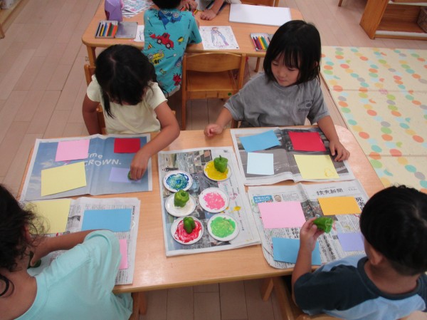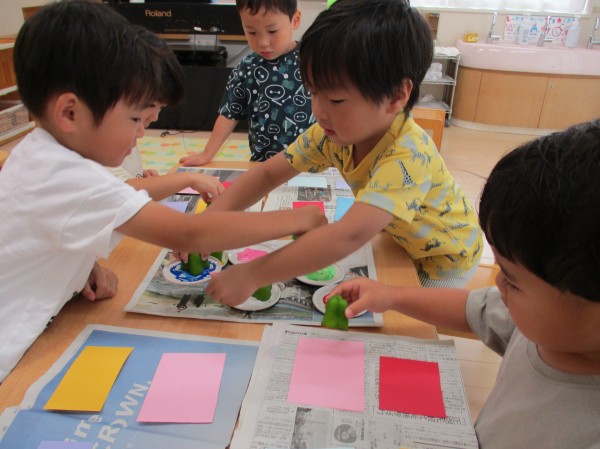 こどもの家・志木中宗岡 ピーマンでスタンプ☆いるか組(4歳児クラス)