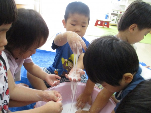 この他にも小麦粉や氷など様々なものに触れて、その温度や感触を肌で感じた子ども達☆