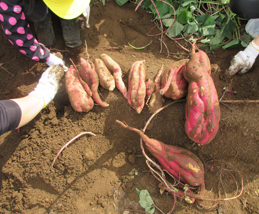 一生懸命収穫してくれたおいもです。ずっしり大きく重いものや、細長くてなかなか抜けなかったもの、途中で折れてしまったものもありましたが、達成感は十分でした。