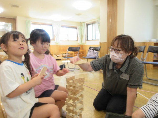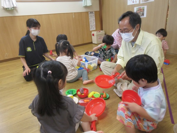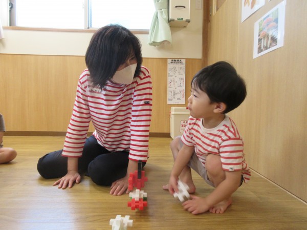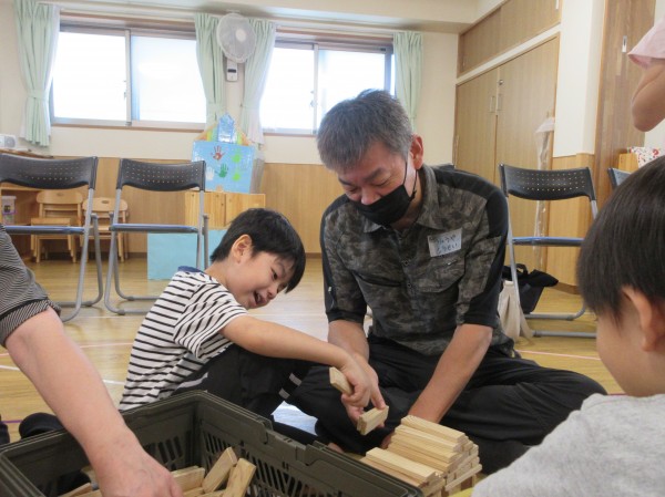 普段、保育園で遊んでいる玩具や遊びを紹介したり、沢山触れ合って遊んでいただいたりと、短い時間でしてがとても楽しそうな子ども達でした。