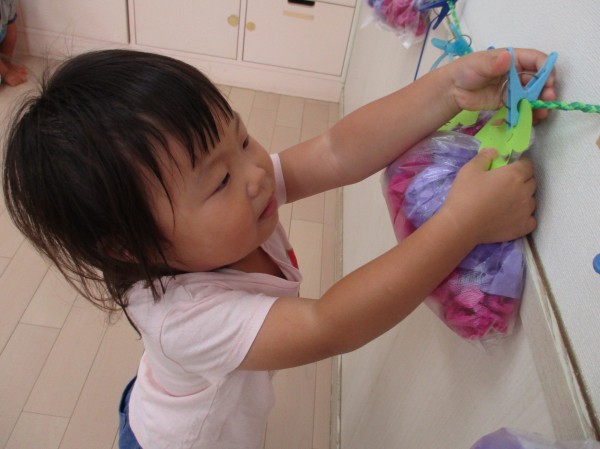 洗濯ばさみから上手にとって収穫していました♪