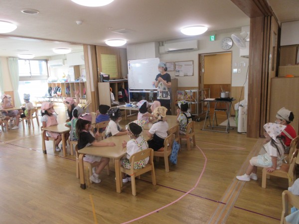 初めに、栄養士さんから材料や作り方を教えていただきました。