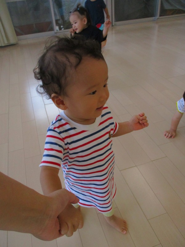 この日はあひる組(1歳児クラス)のお友達と一緒にホールへ。先にあひる組さんがいるところへお邪魔したのですが…