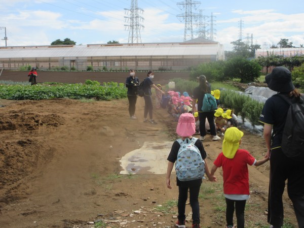 子ども達は楽しみな気持ちが勝り「お芋は大きいかな?」「もぐらがいたらどうしよう⁉」と期待で胸を膨らませながら旬菜園さんの畑へ向かいます。