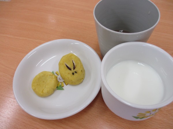 午後のおやつはうさぎさんとお月様の形のスイートポテトでした。