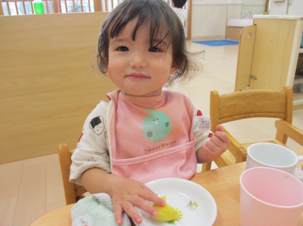 こどもの家・志木中宗岡 あひる組(1歳児クラス)お月見おやつを食べたよ☆
