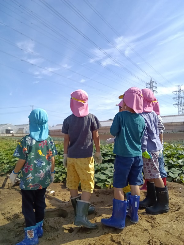 こんにちは!いつも保育園ブログをご覧いただきありがとうございます。今回は、4・5歳児の『お芋掘り』の様子を掲載いたします。