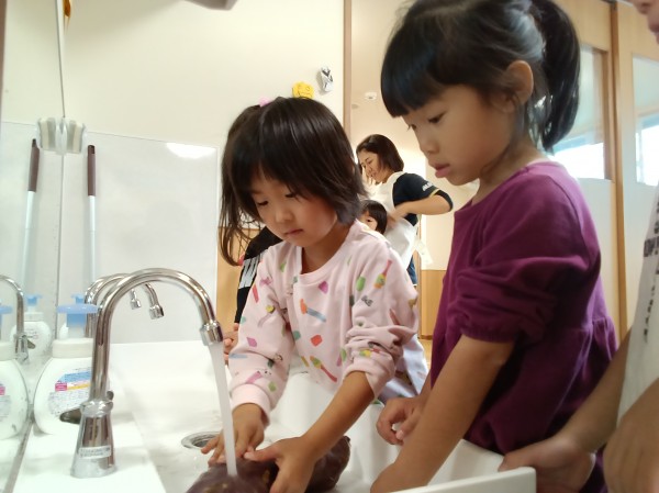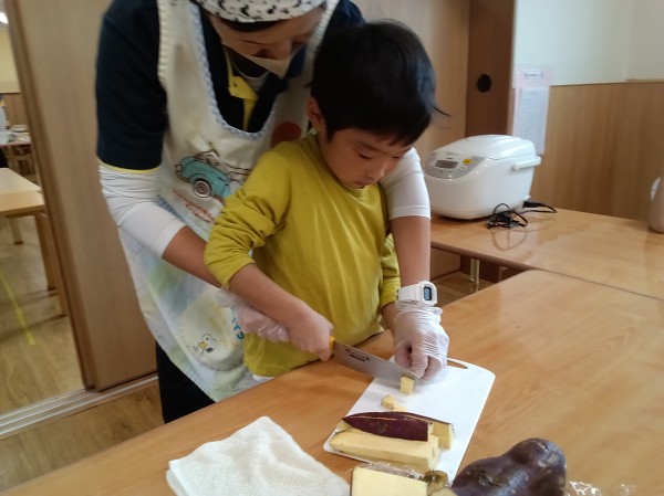 みんなで掘ってきたさつま芋で、お芋ご飯を作りました。