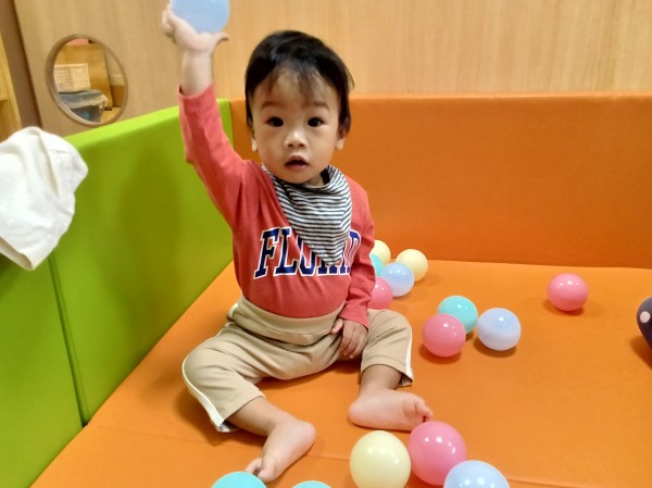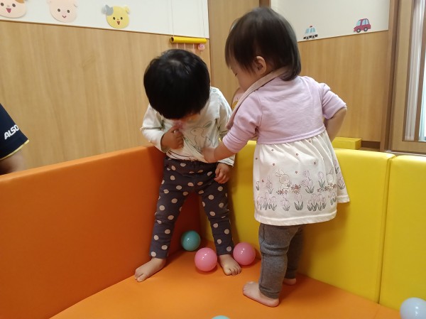 お部屋でボールプールをして遊びました。