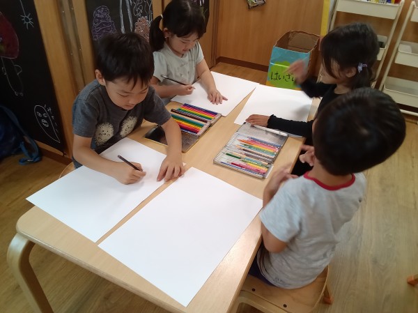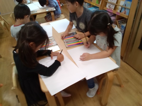 運動会で頑張ったことや、楽しかったことを絵にして発表しました。