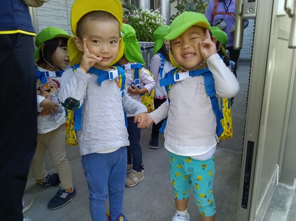今日からうさぎ組に入ったお友だちと散歩に行きました。