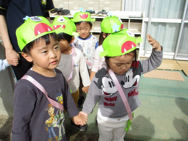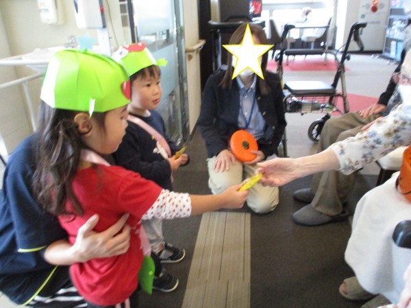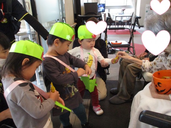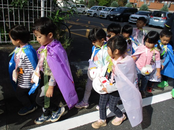ハロウィン当日に2歳児らっこ組と3歳児ぺんぎん組は仮装をして近隣の施設に遊びに行きました(*^▽^*)