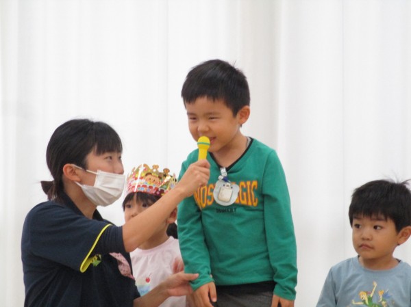 4人のお友だちに、名前や好きな遊びをインタビューで聞くと、とっても大きな声で上手に答えてくれました(*^▽^*)