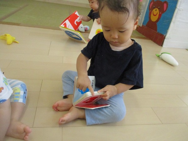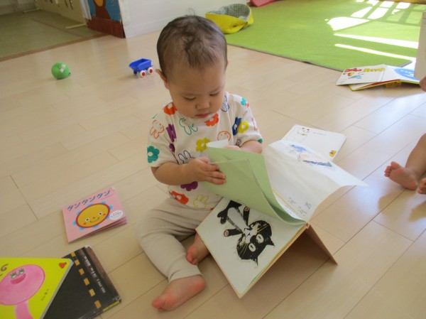 こどもの家・志木中宗岡 たまご組(0歳児クラス)絵本に興味津々(`・ω・´)