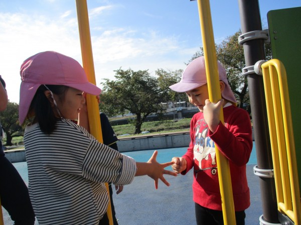ここからはグループに分かれて、秋探しとアスレチック遊び☆