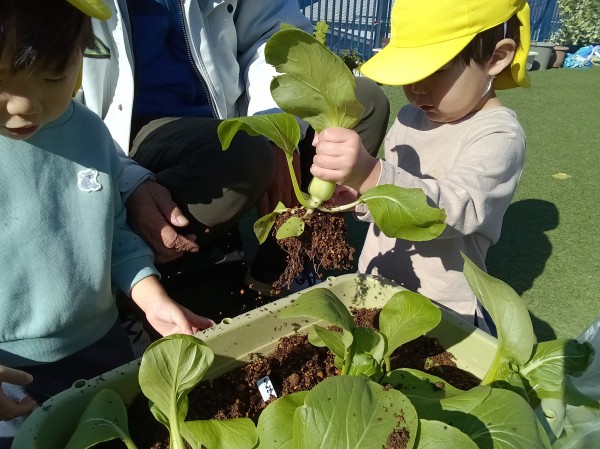 たんぽぽ海神町南保育園 小松菜・チンゲン菜収穫