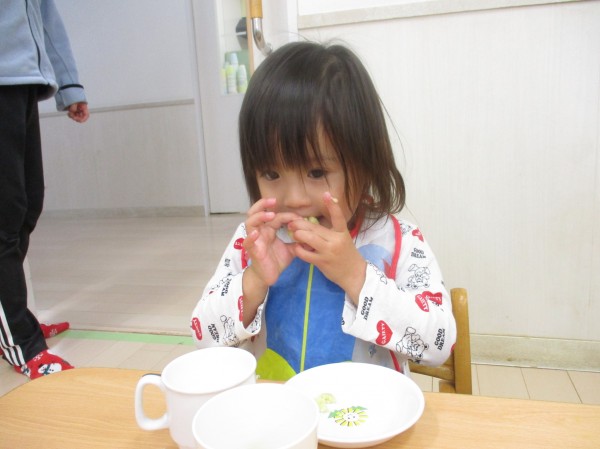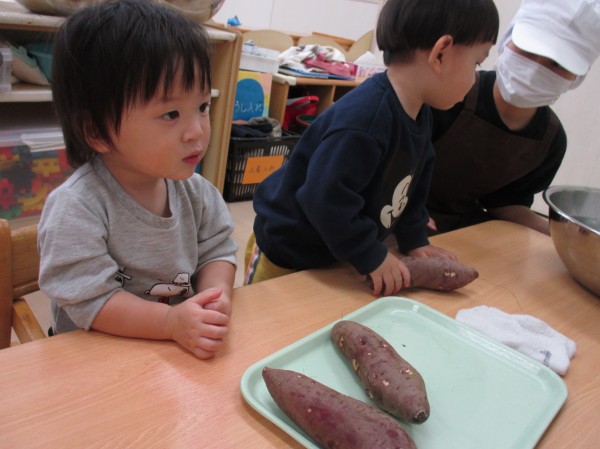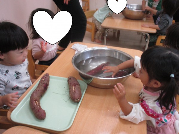 こどもの家・志木中宗岡保育園 あひる組 食育さつまいも洗い(1歳児)