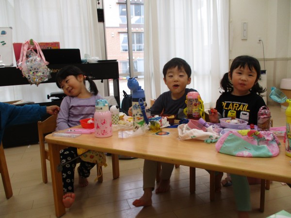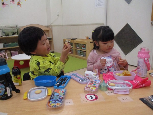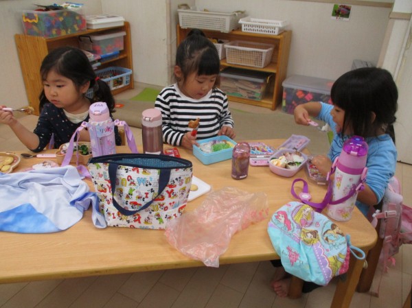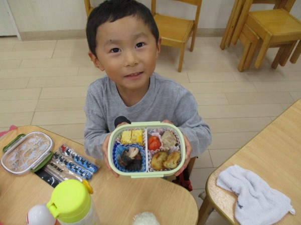 保育園に帰ってからは一番のお楽しみ!!お弁当を頬張りました。