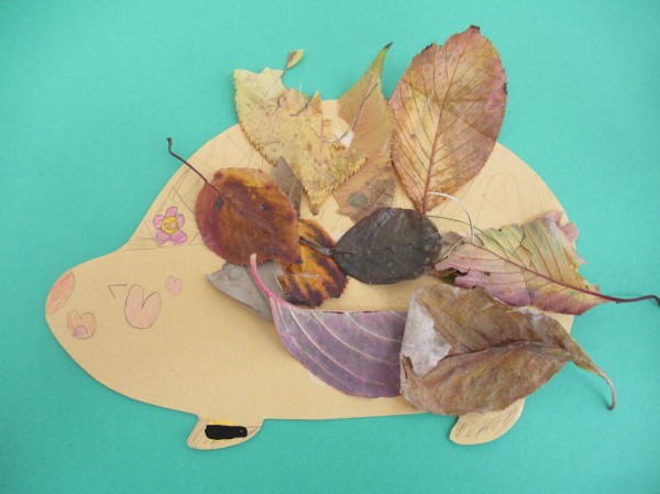 秋晴れの気持ちがいい日、子どもたちは落ち葉を集めてハリネズミを作りました♪