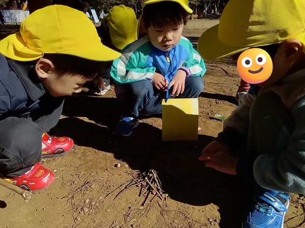 「木を集めて焚火みたいだね」
