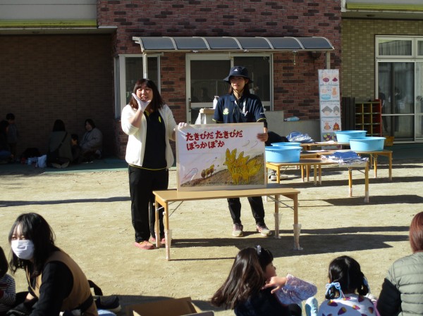 今日は子ども達が楽しみにしていた『やきいもふぅふぅの会』。去年は強風のため中止になってしまったので、2年越しの開催です(*‘∀‘)