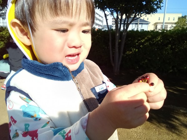 ぽかぽか陽気の中、みんなで手をつないで公園に散歩に行きました。