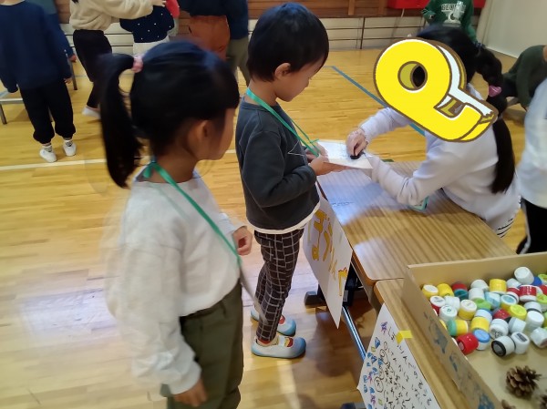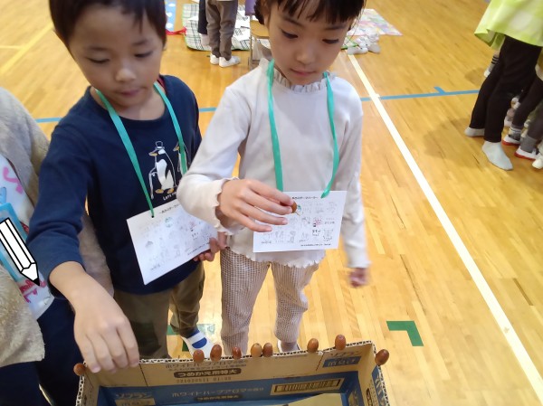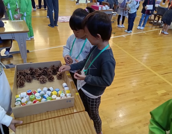 この日は近隣の小学校での交流会にご招待いただきました。学校に行ける事が嬉しい反面少しドキドキしている様子の子どもたち。学校に着くと小学生のお兄さんお姉さんが秋の自然物を使ったゲームを沢山用意して待っていてくれました。園では年長児として堂々と振舞っている子どもたちもこの日ばかりは緊張気味、小学生のお兄さんお姉さんに話しかける声が小さくなってしまう子もいます。そんな仲間の姿を見て、一緒に声をかけてくれる頼もしい子もいました。子どもたちの様子をご覧ください!