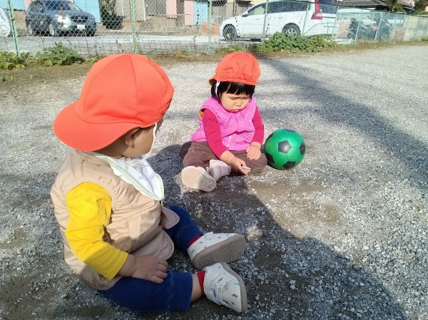 最近は同じクラスのお友だちの顔を覚え、『○○ちゃんはどこ?』と聞くと本人を探して指差しする姿がみられるようになりました。また、お友だちの顔をのぞきこみ何やら話かけるような仕草をしたり、おもちゃを手渡す姿がみられるようになりました。一人ひとりの気持ちを受け止めつつも、お友だちとの関わりの場面も見守っていきたいと思っています。