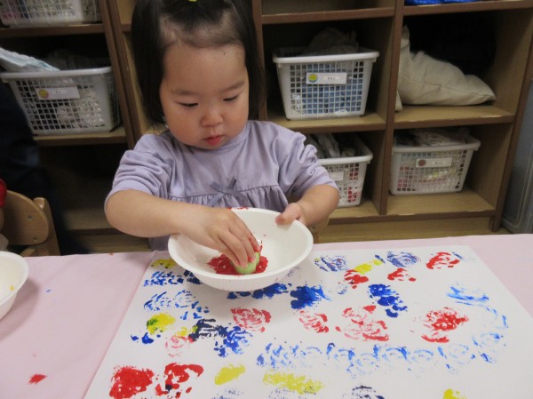 給食室より小松菜の根元の調理で使わない部分をもらい、スタンプして楽しみました!