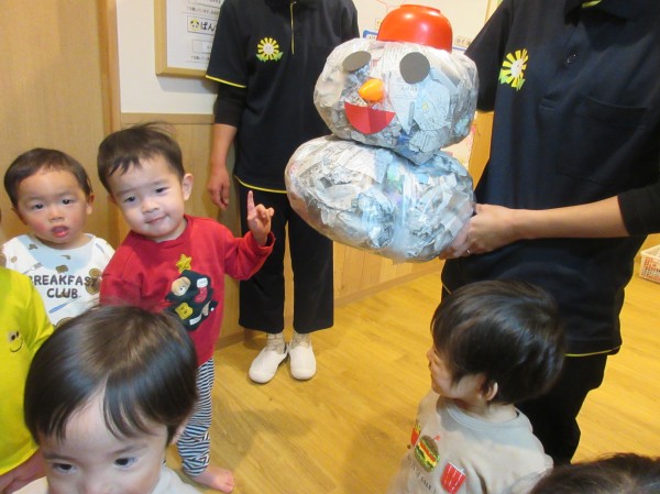 最後はみんなで袋にお片付けをして、雪だるまを作りました!(^^)!