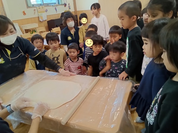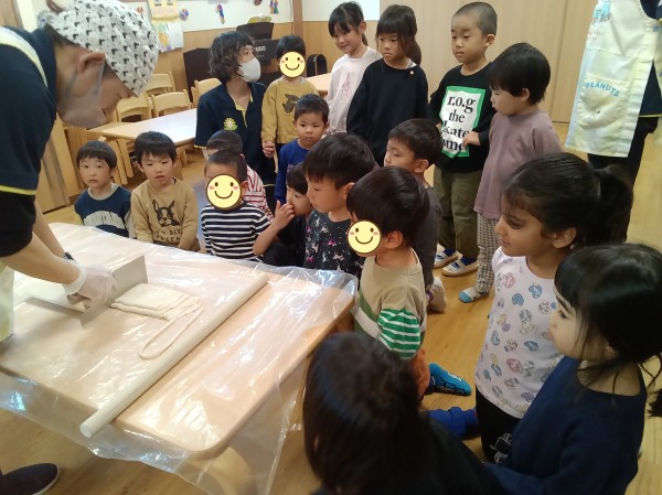 今日は2クラスで、【うどん作り】をしました。
